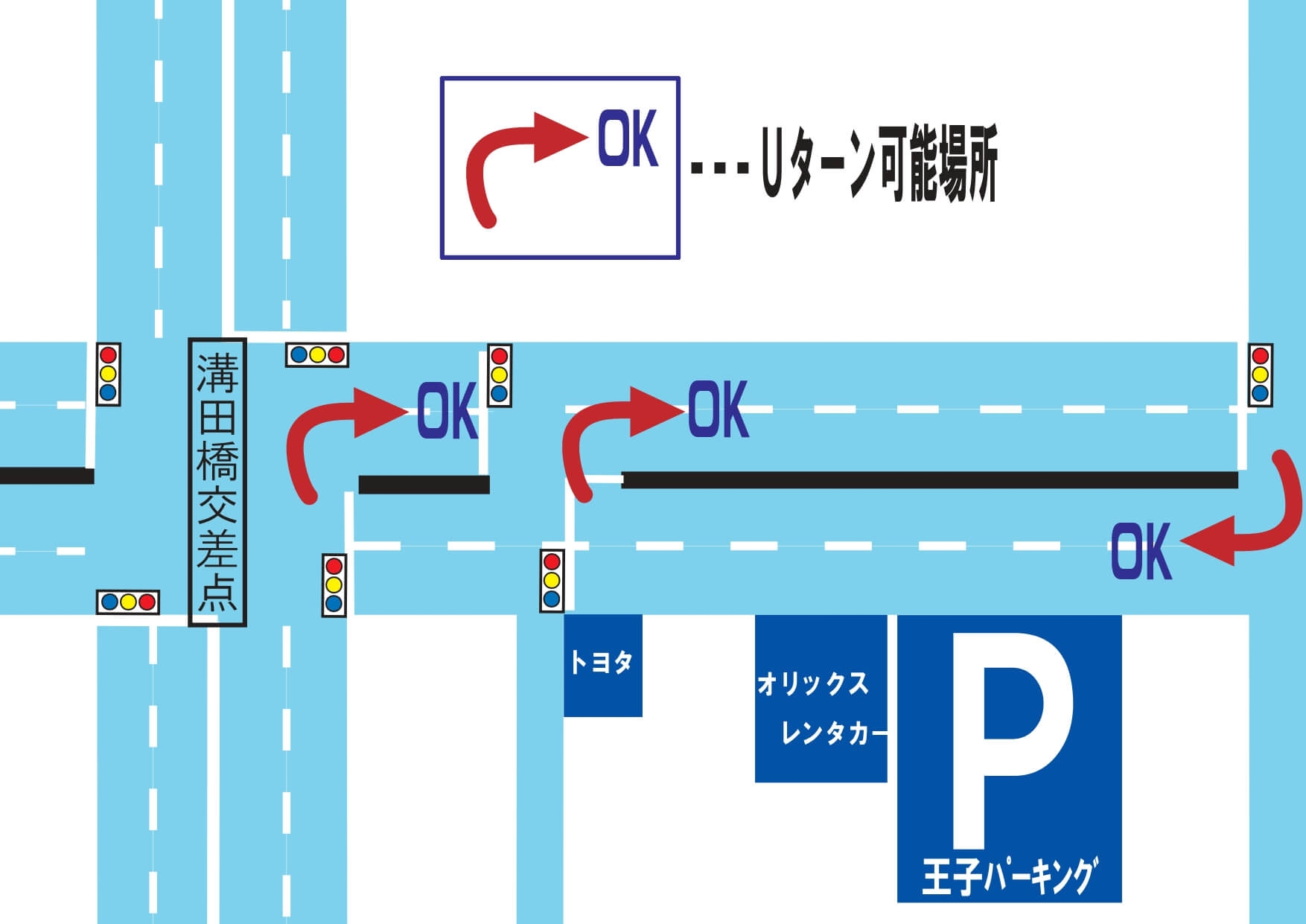 ☆前面の明治通りはUターンOK