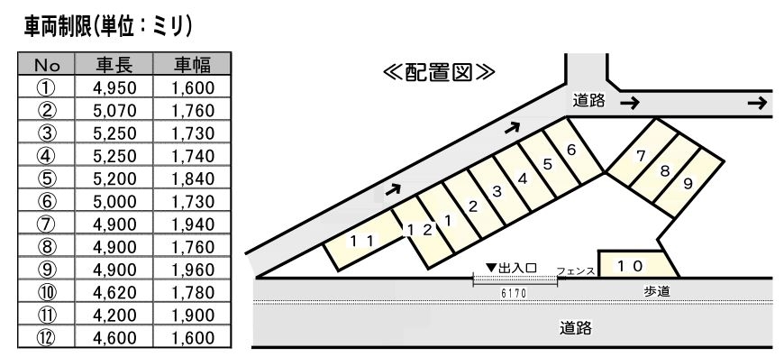 ○駐車位置によってサイズが変わりますので